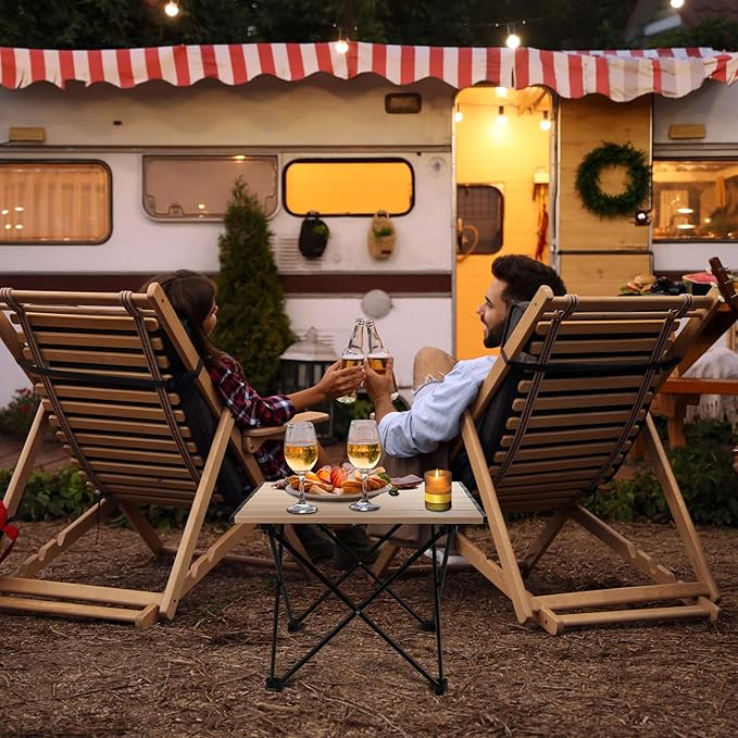 - Ultra-light for Easy Portability: Our folding camp table's top and frame are all made of aluminum, so it's lighter than another comparably-sized wooden camp table, only 3.96 lbs, light enough to carry anywhere. Folds into the included carry bag. This small foldable table can easily fit in the back of a car, RV, motorcycle