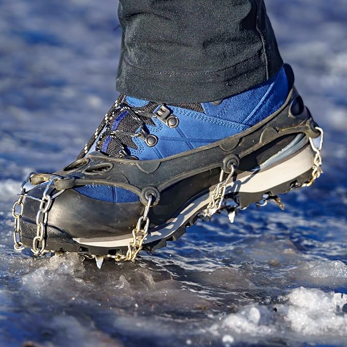 - Versatile Winter Ice Traction: Suitable for men, women, and seniors; ideal for icy driveways, snow-covered roads, frozen trails, wet grass, muddy paths, and other challenging terrain; perfect for hiking, trail running, dog walking, ice fishing, or mountaineering