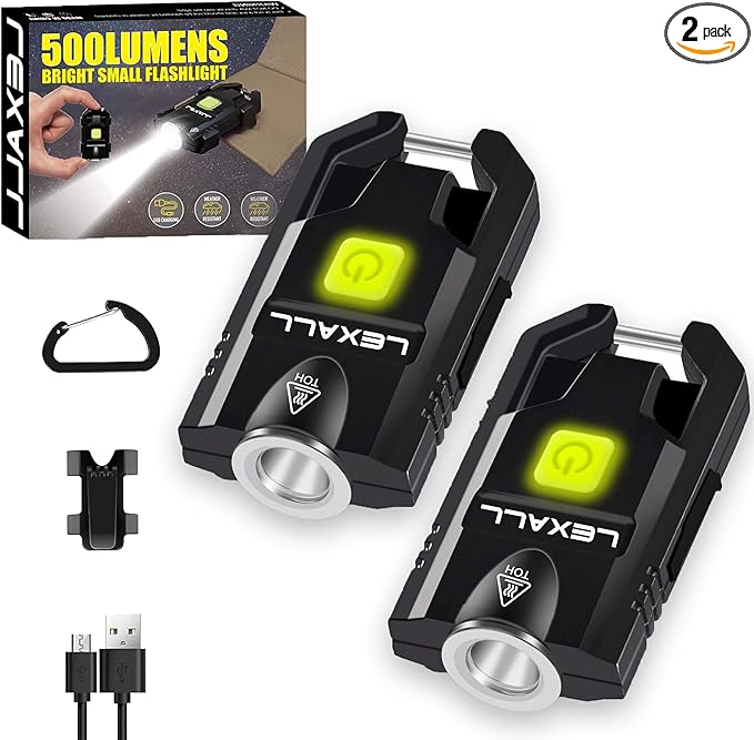 lexall LED Small Flashlight, 2 Pack 500Lumens Bright Mini Keychain Light, USB Rechargeable Pocket Lights with 3 Modes Compact Baseball Cap Lights Indoor and Outdoor for Walking,Searching and Hiking