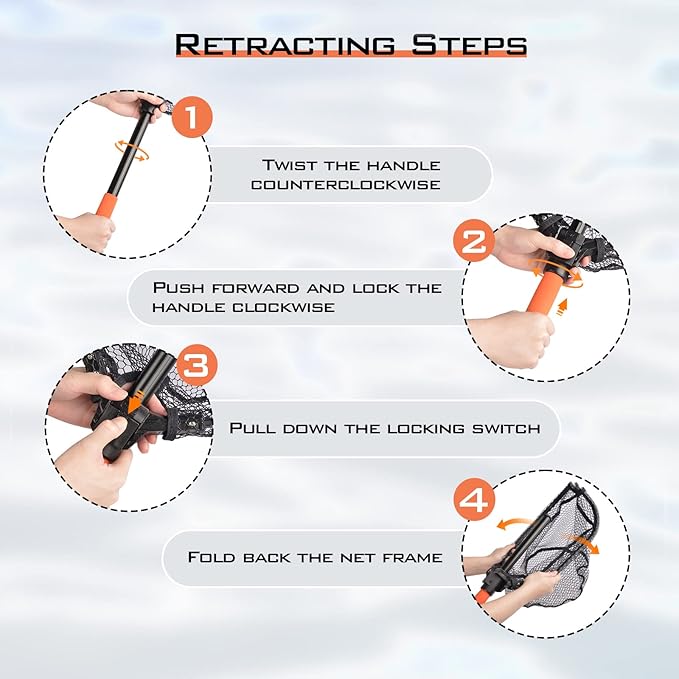 - Bright Color EVA Handle:The bright orange EVA foam handle allows you quickly find the landing net in just a few seconds, even in low light conditions. And this comfortable EVA handle provides a firm handgrip and makes the handle much easier to hold without slipping when your hand is wet or in cold weather.