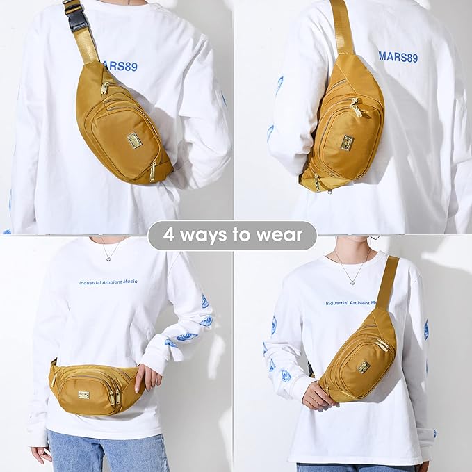 - 【STRONG ADJUSTABLE NYLON BELT】: The belt of the waist bag is adjustable, The waist belt adjusts to fit waists with Sizes ranging from 35 to 50 inches. Adjustable Length There are many ways to wear this fanny pack - (1)As a Waist Bag:Wear it in front of your waist (2)As a Hip Pack:Back on your hip (3)As a Sling Fanny Pack or a Shoulder Fanny Pack:Slant across your chest or over You shoulder.Perfect for various occasions.