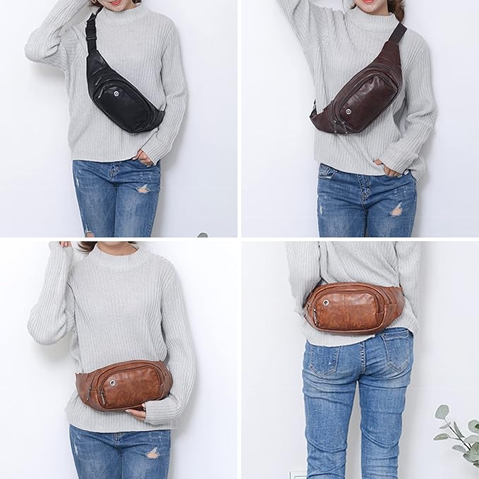 - 【DURABLE MATERIAL】: Waist pack made of high quality PU leather fabric, the bum bags are sturdy and scratch-resistant and long-lasting usage. Smooth zippers ensure users to have quick access to the items.