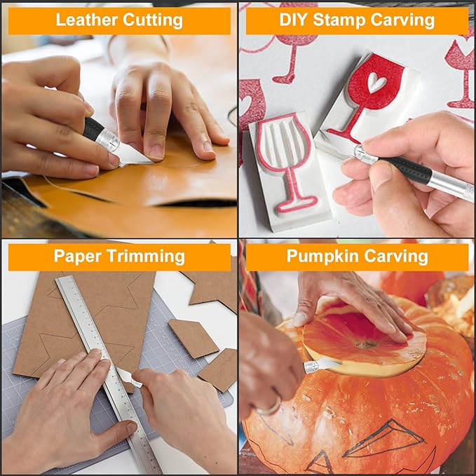 - 【Wide Application】Hobby Knife Blades are ideal for cutting wood, scrapbooking supplies, cardboard, paper, plastic, cloth, leather and foam board craft to meet your different needs.