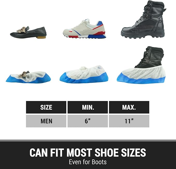- ✅ LARGE SIZE FITS MOST: Whether shoes or boots, our shoe covers are designed to fit all sizes up to a US male size 11 and female size 12.