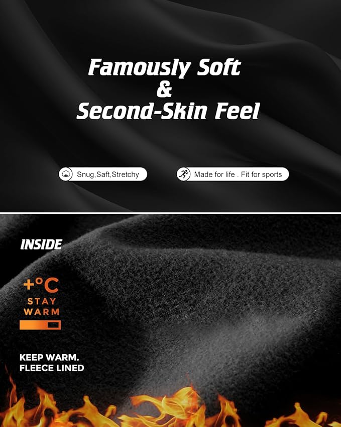 - Ultimate Warmth and Comfort: Our thermal underwear is designed to keep you warm and comfortable even in the coldest weather. With fleece lining, you'll stay cozy all day long. 90% polyester and 10% spandex ensure it is durable, flexible, and long-lasting