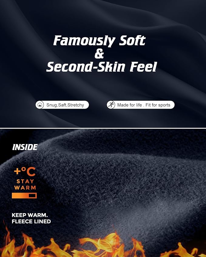 - Ultimate Warmth and Comfort: Our thermal underwear is designed to keep you warm and comfortable even in the coldest weather. With fleece lining, you'll stay cozy all day long. 90% polyester and 10% spandex ensure it is durable, flexible, and long-lasting