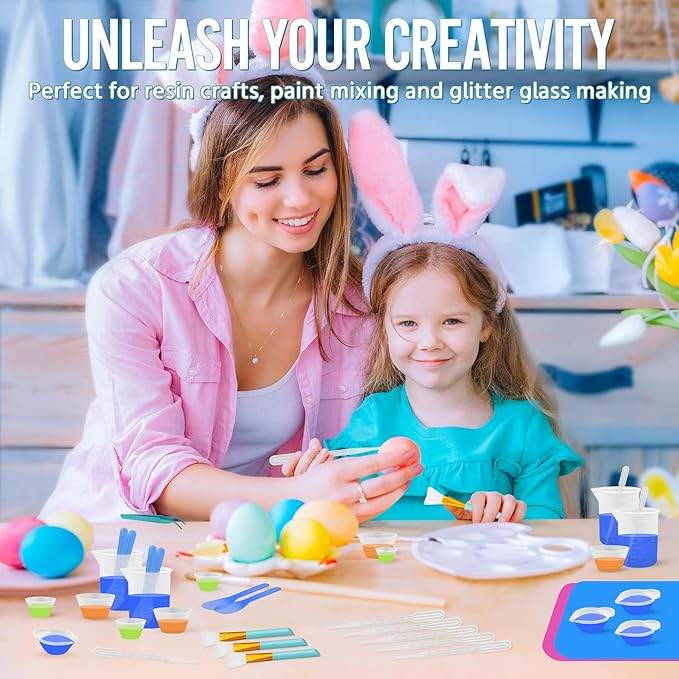- 【36Pcs Resin Mixing tool Kit】 Includes 2pcs silicone mat, 4pcs 100ml silicone measuring cups, 8pcs 3ml transfer pipettes droppers, 12pcs mini silicone mixing cups, 6pcs plastic stir sticks, 4pcs silicone brushes and 1pc tweezer. This epoxy resin tools kit is a good helper for epoxy resin craft DIY lovers, for resin mixing, cosmetics, clay, paint, casting, molding, glue, jewelry making, various types of epoxy resin arts and crafts projects.