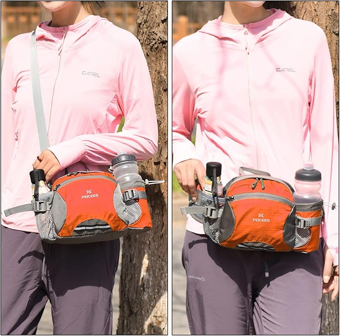 • PERFECT FOR OUTDOOR ACTIVITIES - Peicees hiking fanny packs have a large capacity, big enough for all your outdoor hiking essentials. Multiple compartments for user-friendly carrying. Commonly used as a walking fanny pack and hiking waist pack for womens and men. Perfect for hiking, camping, fishing, cycling, jogging, climbing, outdoor, sports, traveling, vacation, etc. Your perfect outdoor associate.