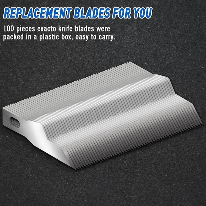 - HIGH-QUALITY MATERIAL - Our exacto blades are made from premium high carbon steel, ensuring moderate hardness, excellent wear resistance, and superb machinability. Our hobby blades are sharper and more durable than other brands.