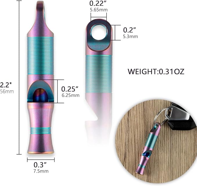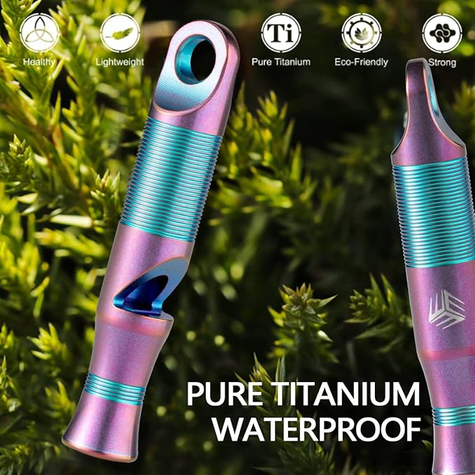 - PREMIUM & DURABLE - - - Made of premium titanium, the whistle emergency is lightweight, anti-rust, anti-corrosion from acid and alkali, non-toxic, non-allergenic, high refractive properties, durability and brilliance of colour.