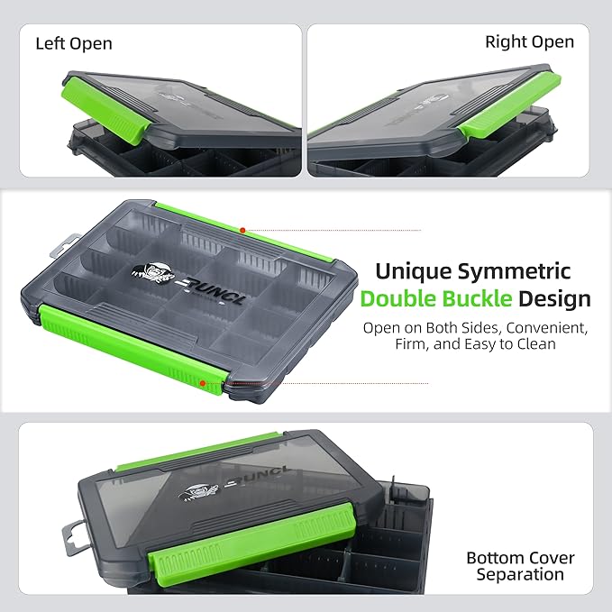 - Easy One Hand Operation: The S/L Double Buckle Open Tackle Trays feature a dual-sided latch on top, providing convenient one-hand operation. You can lift the lid from either side or completely remove it, making it effortless to access your fishing gear.