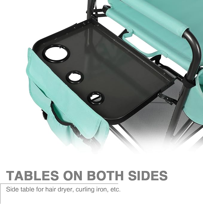 EVER ADVANCED 31" Tall Portable Makeup Artist Chair for Clients Directors Chair with Two Side Tables, Foldable Folding Chair for MUA, Craft Shows, Hair Stylist, Salons, Movie Sets 350LBS Green