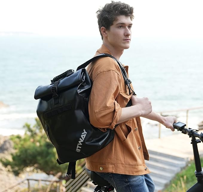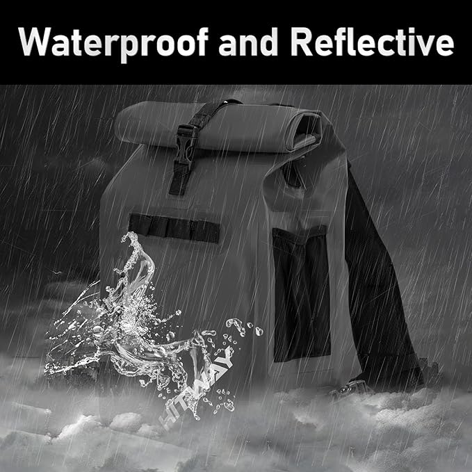 - 🎃Brilliant waterproof material:HITWAY Trunk Pack Bag is designed with the highest quality PVC material and 100% seamless waterproof zipper, which is tear-resistant, abrasion-resistant and heat-resistant, which can perfectly protect your items. Make sure you can use your bike bag in rain, snow or wet weather without hesitating your valuables getting wet inside. You don't even need to worry about muddy roads getting your bag dirty, because just wipe it down with a damp cloth.