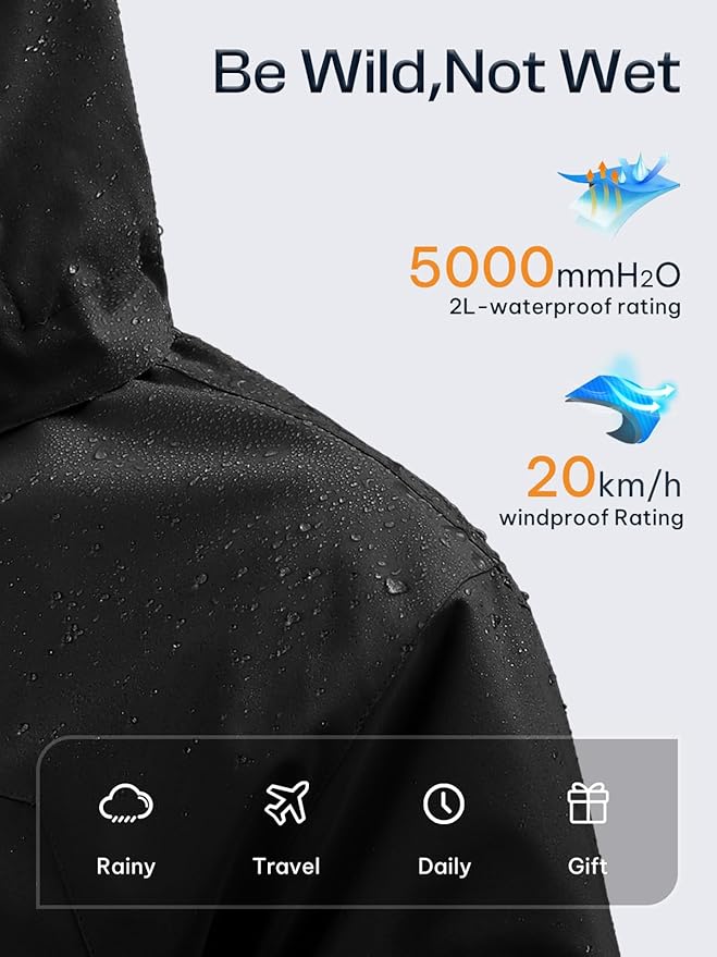 - 【Stay Dry】: With 2L waterproof membrane shell, center-front zipper with external storm flaps, blocks moisture by using materials that prevent water absorption, so you stay dry in wet conditions with this raincoat.
