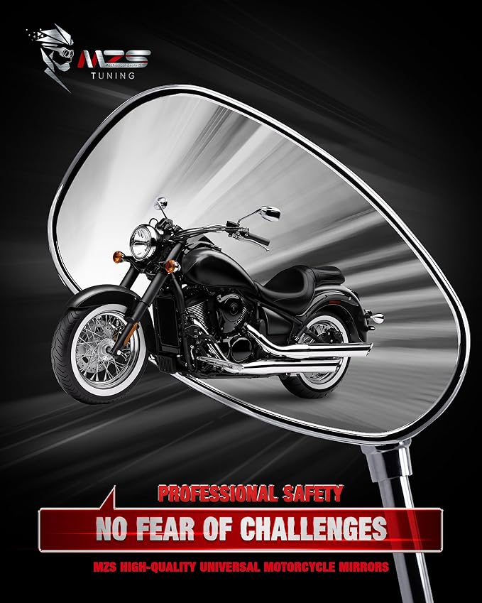 MZS Motorcycle Mirrors Chrome, Universal 10MM 8MM Rear View Side Mirror 360 Degree Adjustable Handlebar Compatible with Street Bike Cruiser Touring Chopper Scooter GY6