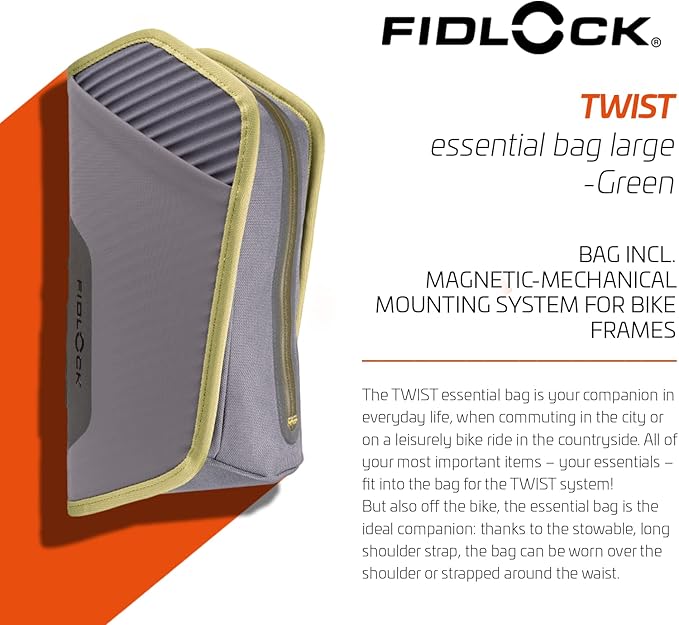 FIDLOCK Twist Essential Bag with Bike Base | Optimized for Bike’s Frame Triangle | Splash-Proof Material Closure | Additional Compartments Inside and Outside | Green | Large