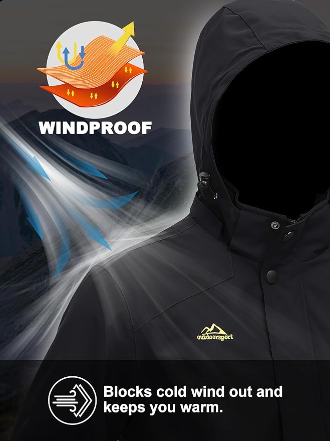 - [Windproof]Adjustable cuffs with hooks and loops, full front zipper closure jacket with detachable and adjustable storm hood, internal drawcord hem ,all these design keep wind out and keep warm effectively.