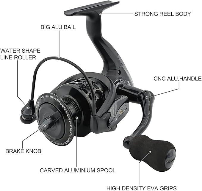 - Smooth & Good Performance - Fishdrops Spinning Fishing Reel with 12+1 High-rated Ball Bearings and one-way clutch system, an anti-reverse system, and a High-Speed Gear Ratio of 5.1:1/5.5:1/4.7:1, which makes the reels more smooth and have a good performance.