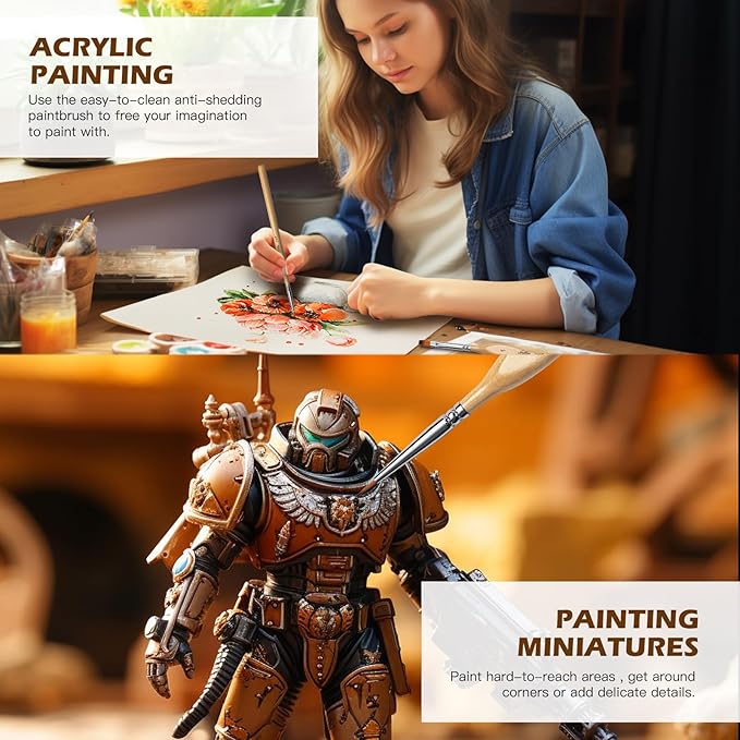 - 【Perfect for Precise Painting】Micro detail paint brush can handle various paintings such as acrylic, watercolor, tempera, enamel, gush, oil, paint by number,model car,airplane and miniature painting.