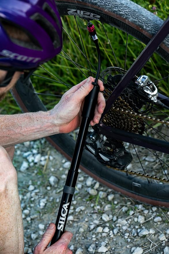 SILCA Gravelero mini Bike Pump | high Volume Gravel/Mountain/Road | Alloy Body w/Hose and Locking Chuck | Presta and Schrader Head | Micro Hand Pump for tubed/tubeless Tires | Bike Hand Pump