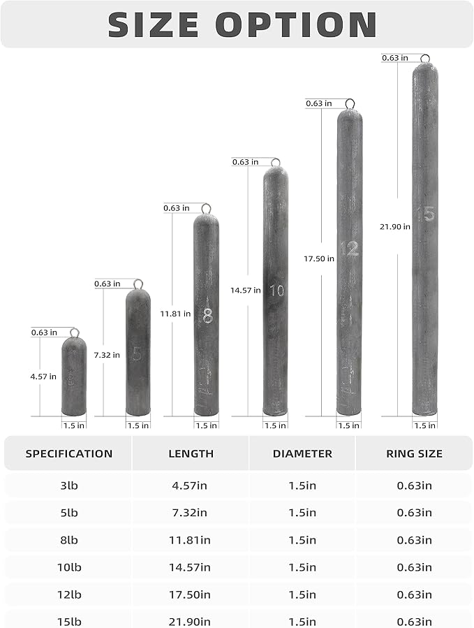 - Multiple Sizes: Available in 6 sizes(3-15lb) to meet the needs of different fishing depths.