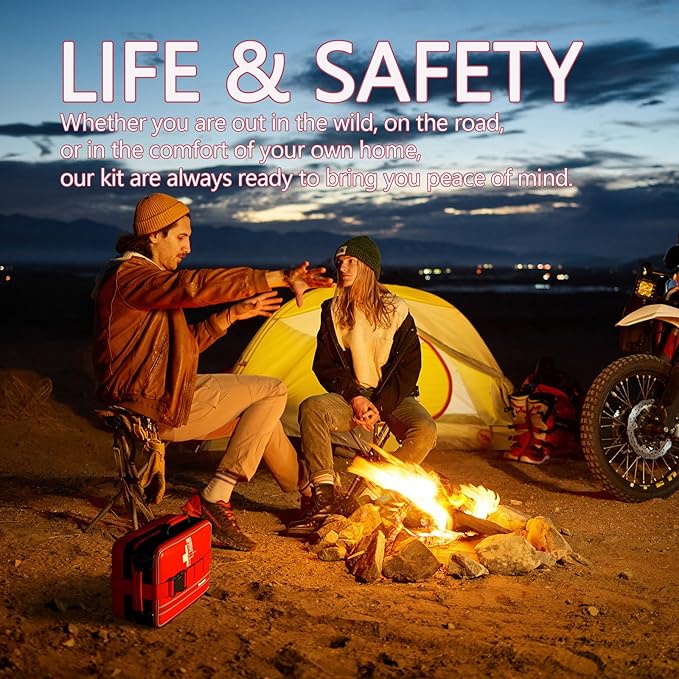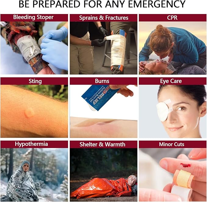 - Upgraded Comprehensive First Aid Kit: It contains 324 pieces of basic first aid supplies like Israeli bandages, splints, ice packs, CPR masks, and flashlights for various injuries. The deluxe first aid kit has enough for a family or group in an emergency