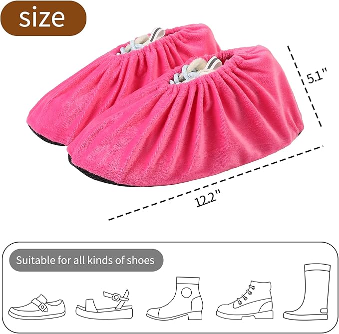 5 Pairs Reusable Shoe Covers, Non Slip Shoe Protectors Covers, Universal Soft Washable Thickened Foot Boot Shoe Covers for Indoors Home Laboratory (Pink)