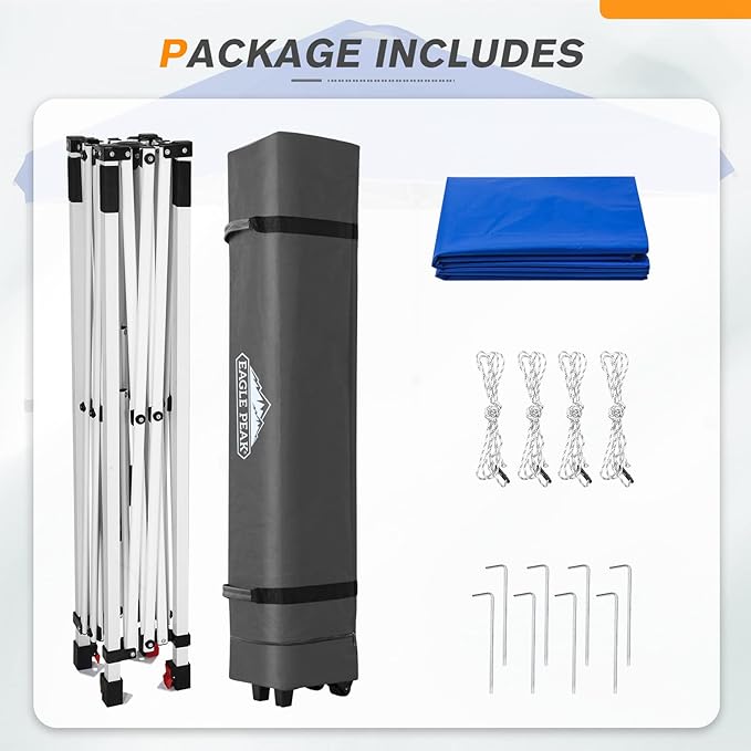 - EAGLE PEAK PROMISE: EAGLE PEAK offers 1-year limited after sale protection from the date of purchase. Unlike many other canopy sellers, EAGLE PEAK offers this for our frames, tops and bags! Please contact our professional service team with any questions