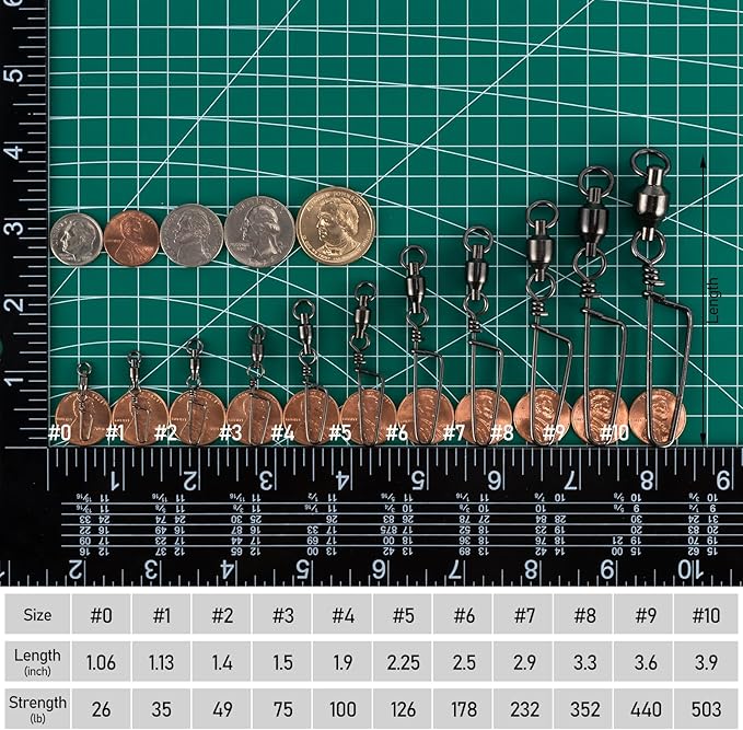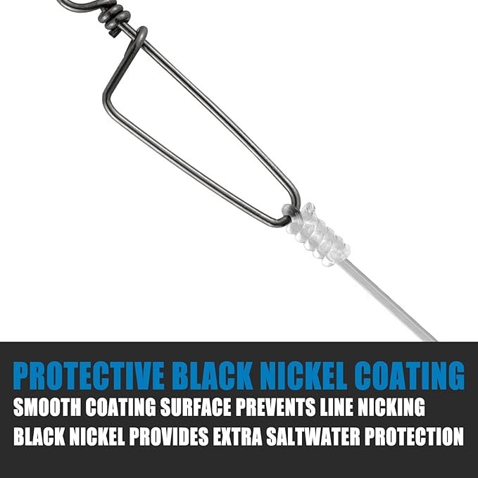 - PREMIUM MATERIAL: Ball bearing swivel made with high quality copper, snap and ring made with enhanced stainless steel. Full body coated with black nickel coating for incredible strength and durability.