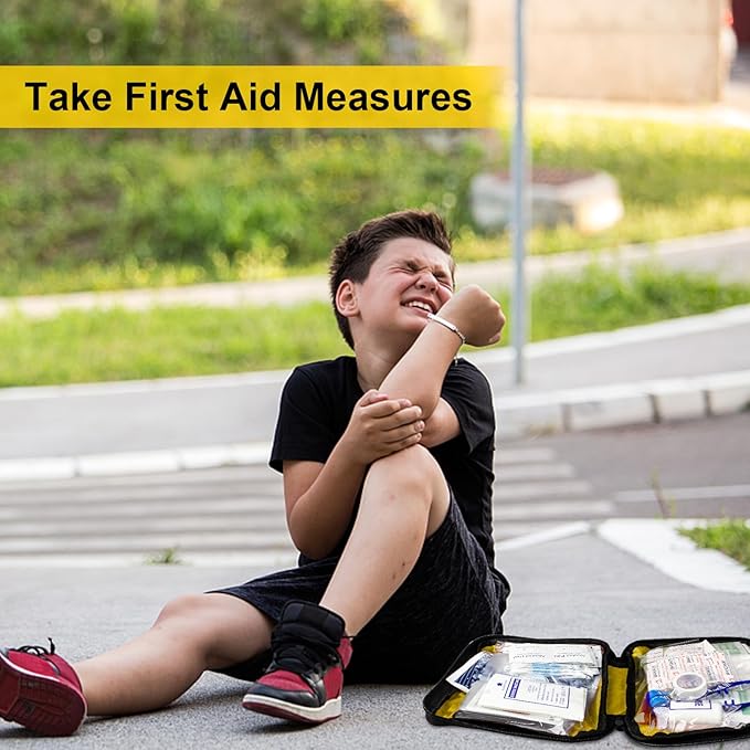 - First Aid Kit Must Have Essentials -- Convenient waterproof first aid kit with plastic compartments for quick and easy access to what you need (The zipper edge is not waterproof). Contains 300 pieces of basic daily first aid necessities such as cotton swabs, band aids, burn dressings, tongue depressors, bandages, gauze sheets, safety pins, triangular bandages, instant ice packs, scissors, plastic tweezers, etc. These home first aid kits are perfect for business trips, outdoor activities