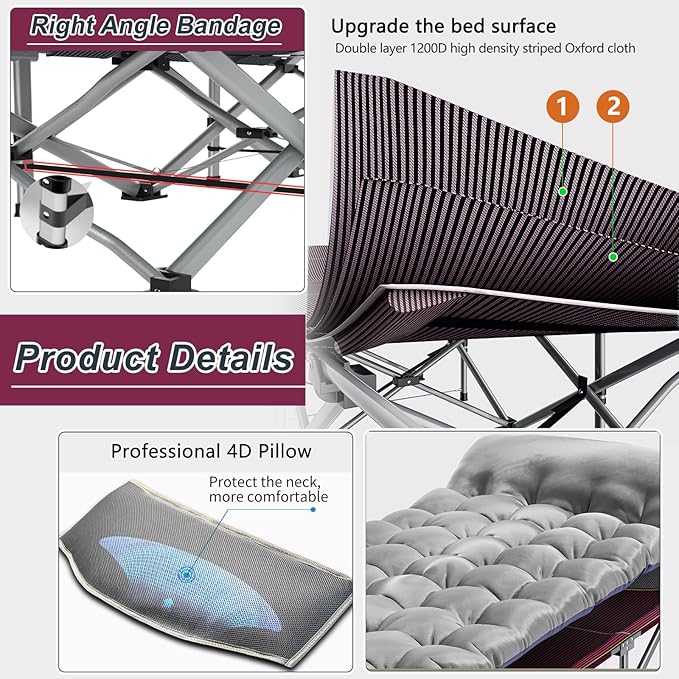 - Premium Materials: Made from double-layered 1200D polyester and a sturdy steel frame; thick oxford material prevents discomfort from frame bars; elevated headrest for added comfort; oval-square shape tube measures 1" for better support