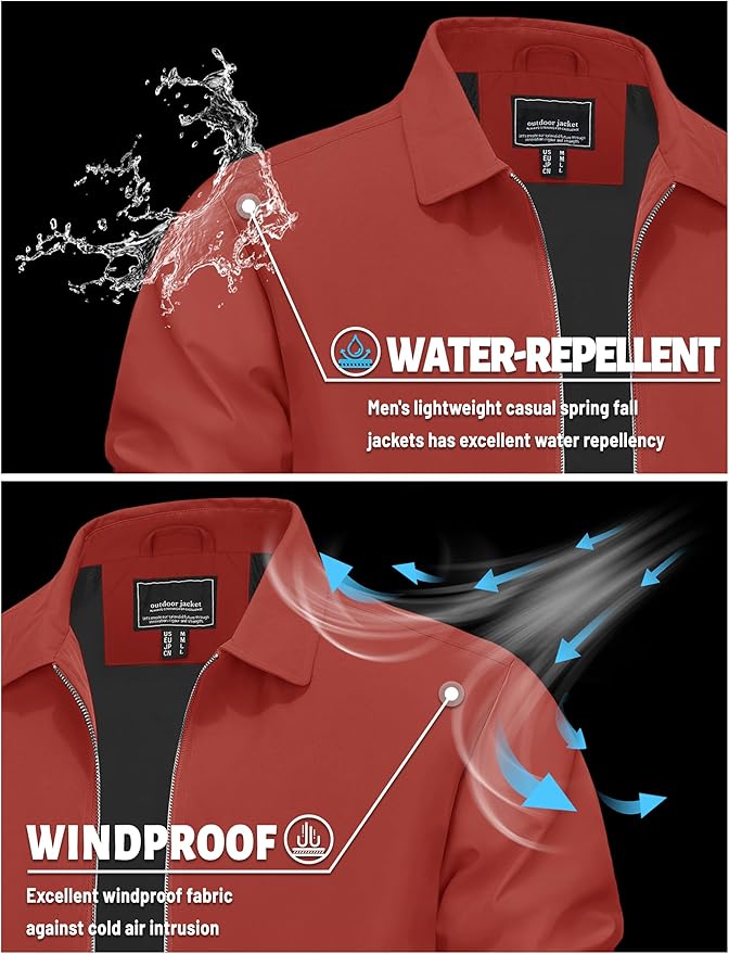 - [STYLISH-FIT] Full zipper jackets; Classic laydown collar; Adjustable snap button cuffs and Elastic hem.