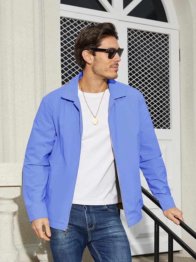 - [STYLISH-FIT] Full zipper jackets; Classic laydown collar; Adjustable snap button cuffs and Elastic hem.