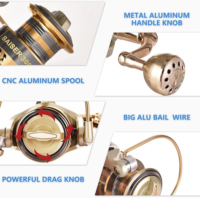 - Smooth & Good Performance - Fishdrops Spinning Fishing Reel with 2+1 High-rated Ball Bearings and one-way clutch system, an anti-reverse system, and a High-Speed Gear Ratio of 5.1:1/5.5:1, which makes the reels more smooth and have a good performance.