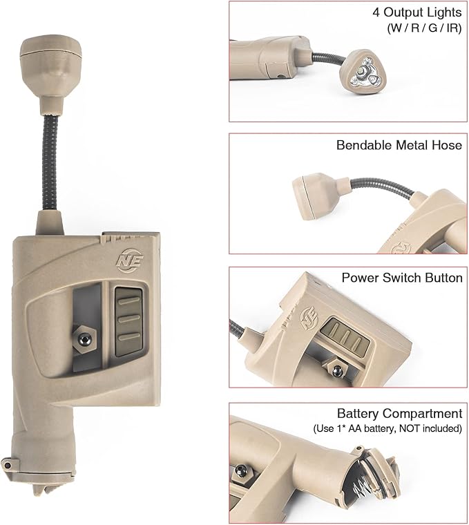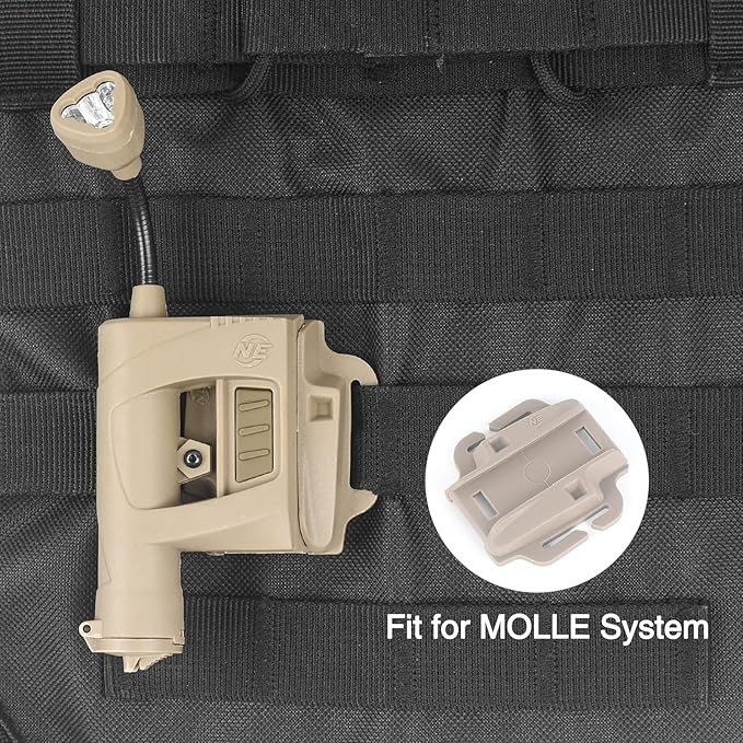 - [Bendable Lamp Neck] - Designed with flexible bendable metal hose, can be adjusted the light illumination angle arbitrarily according to tactical needs