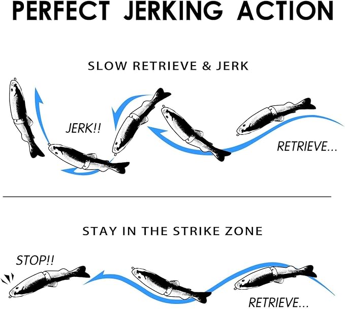 - METAL JOINT LIFELIKE LURES - Designed with metal joint body, TRUSCEND fishing lure can sink slowly and moves flexible in water. In addition, life-like swimming actions make it attracting more catches and provoking predator fish to strike.