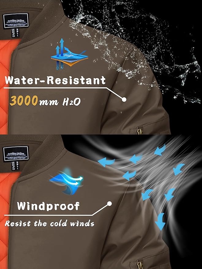 KEFITEVD Men's Jacket Casual Windproof Bomber Jackets Full Zip Windbreaker Warm Winter Padded Coats