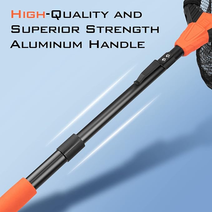 - Bright Color EVA Handle:The bright orange EVA foam handle allows you quickly find the landing net in just a few seconds, even in low light conditions. And this comfortable EVA handle provides a firm handgrip and makes the handle much easier to hold without slipping when your hand is wet or in cold weather.