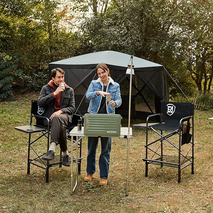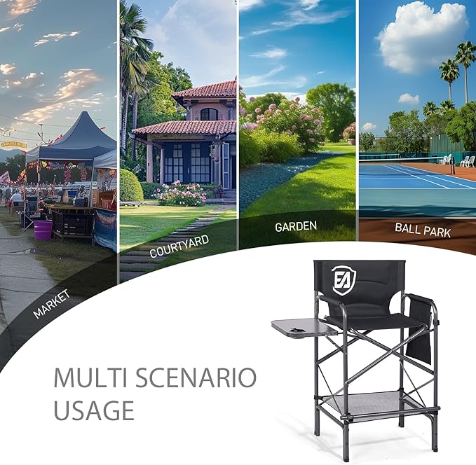 EVER ADVANCED 30.7" Seat Height Directors Chair for Makeup Artist with Side Table Easy Get in Out for Elderly Tall Camping Chair Supports 350lbs Black
