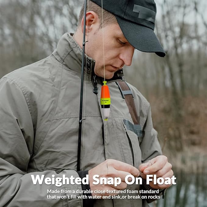 - SPRING FIXED DESIGN:Spring fixed design allows for quick and easy depth setting.Snap on float that keeps the hook and bait suspended above the bottom at the desired depth.Slip bobbers are certainly more cosmetically pretty and don't pinch your line.