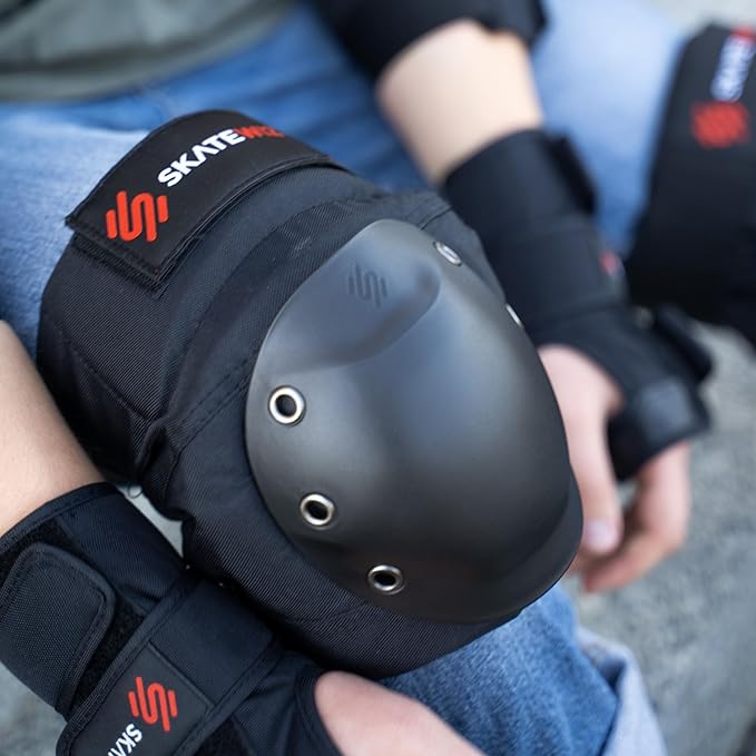 - SHRED IN SAFETY – Make sure your joints are protected with adult skate pads before you pull on your roller skates or step on your skateboard. Cover your body with wrist guards, knee pads, and elbow pads - 6 expertly engineered pads from SKATEWIZ