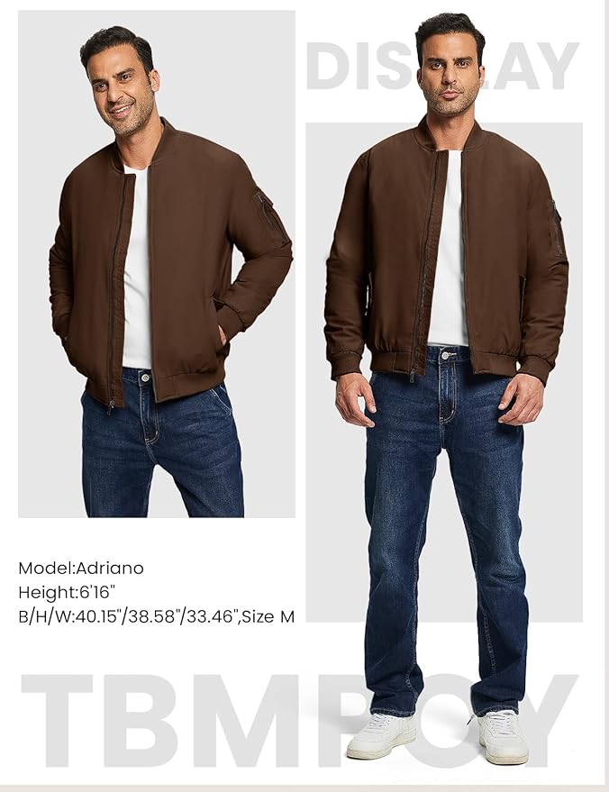 TBMPOY Men's Fall Jacket Winter Windbreaker Bomber Zip Up Padded Softshell Warm Windproof Casual Coat