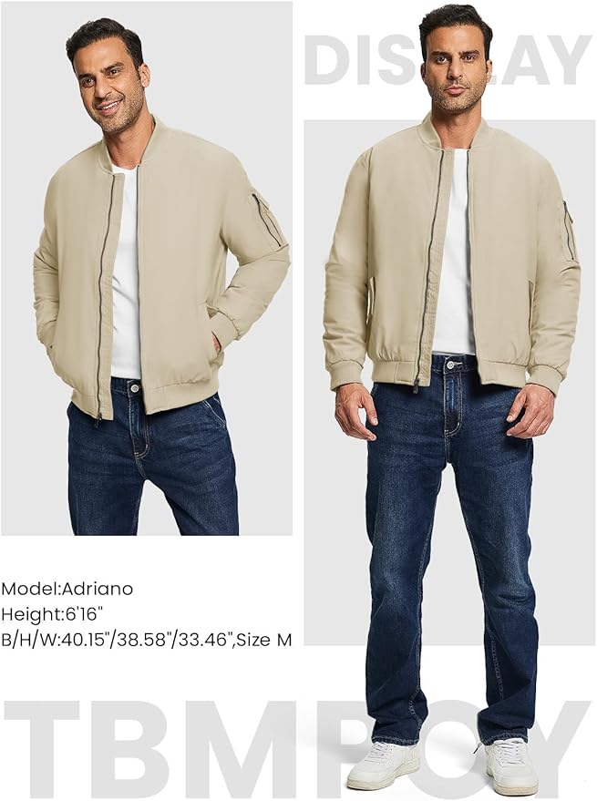 TBMPOY Men's Fall Jacket Winter Windbreaker Bomber Zip Up Padded Softshell Warm Windproof Casual Coat