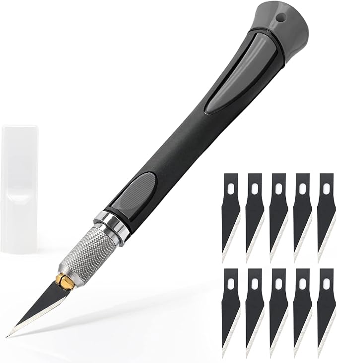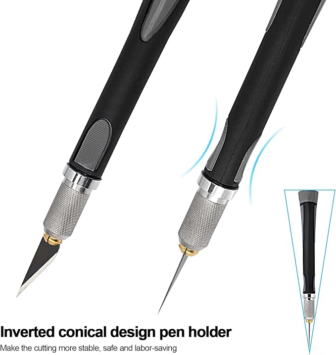 - Come with Extra 10PCS Knife Blades:10 pcs upgraded carbon steel craft blades are very sharp and durable. Precision art knives have everything you need for scrapbooking supplies, crafts, DIY projects or work tasks.