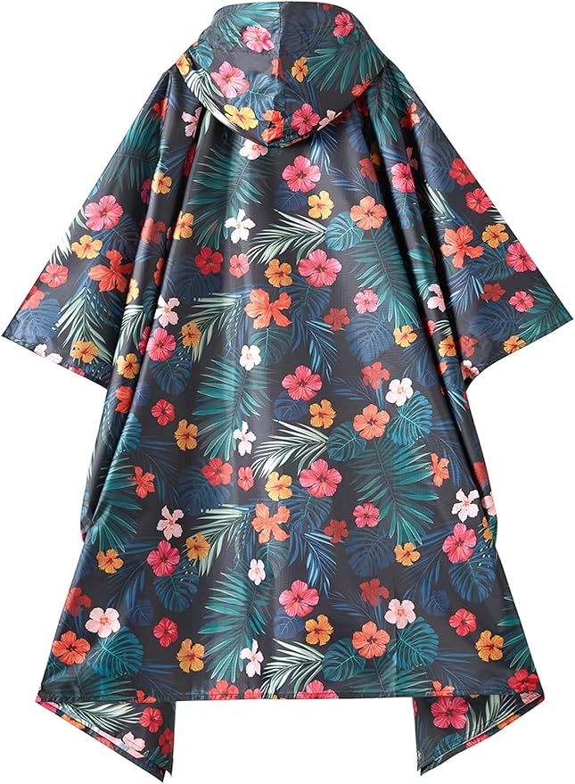PTEROMY Hooded Rain Poncho for Adult with Pocket, Waterproof Lightweight Unisex Raincoat for Hiking Camping Emergency