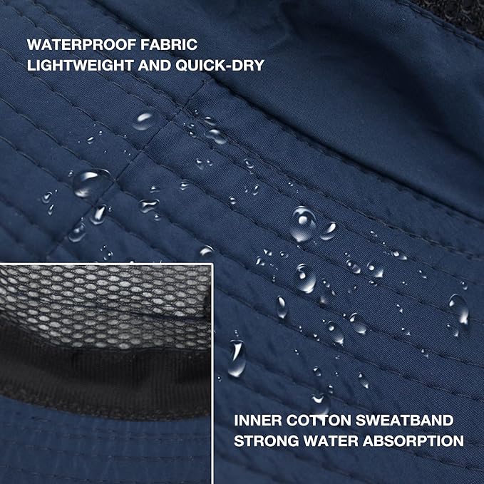 - PACKABLE LIGHTWEIGHT: Waterproof bucket sun hat for men can be folded in half, easily carried inside your bags. This comfortable and trendy boonie sun hat is perfect bucket hat for daily use and outdoor activities like fishing, hunting, camping, hiking, gardening, cycling, biking, boating, trekking, walking, jogging, working, vacations, golf, baseball, marathon, safari, travel, research, beach, pool.