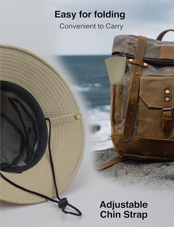 - PACKABLE LIGHTWEIGHT: Waterproof bucket sun hat for men can be folded in half, easily carried inside your bags. This comfortable and trendy boonie sun hat is perfect bucket hat for daily use and outdoor activities like fishing, hunting, camping, hiking, gardening, cycling, biking, boating, trekking, walking, jogging, working, vacations, golf, baseball, marathon, safari, travel, research, beach, pool.