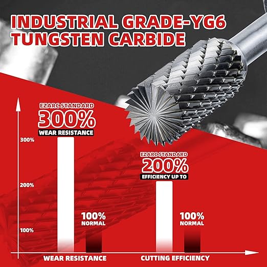- 【Double Cut Design】The additional cutting edges allow for faster material removal, reduced loading, and a smoother surface finish. Double cut burrs providing better control and precision to ensure stable operation. It suitable for working with a variety of materials, including harder metals like steel and cast iron