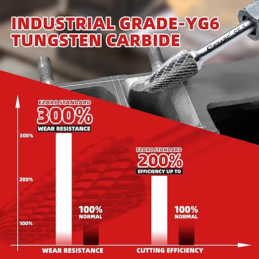 - 【YG6 Tungsten Carbide】Carbide rotary burr bits made of YG6 material boast a high hardness (90 HRA) and excellent wear resistance, allowing them to maintain their cutting edges and perform effectively even in demanding conditions. It customized for professional users