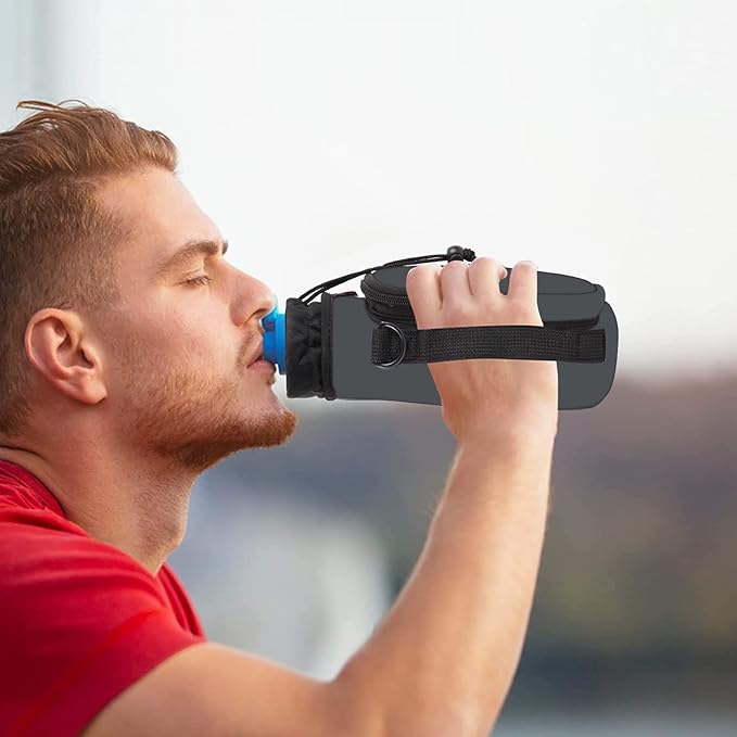 - icolor Sports Wide Mouth Bottle Accessories for Hiking Travelling Camping: Have Adjustable Padded Shoulder and Handle Strap. It is with 2 zipper Pockets too,The small zipper pocket is for cash and card, the large zipper pocket is for smartphone, keys & other.